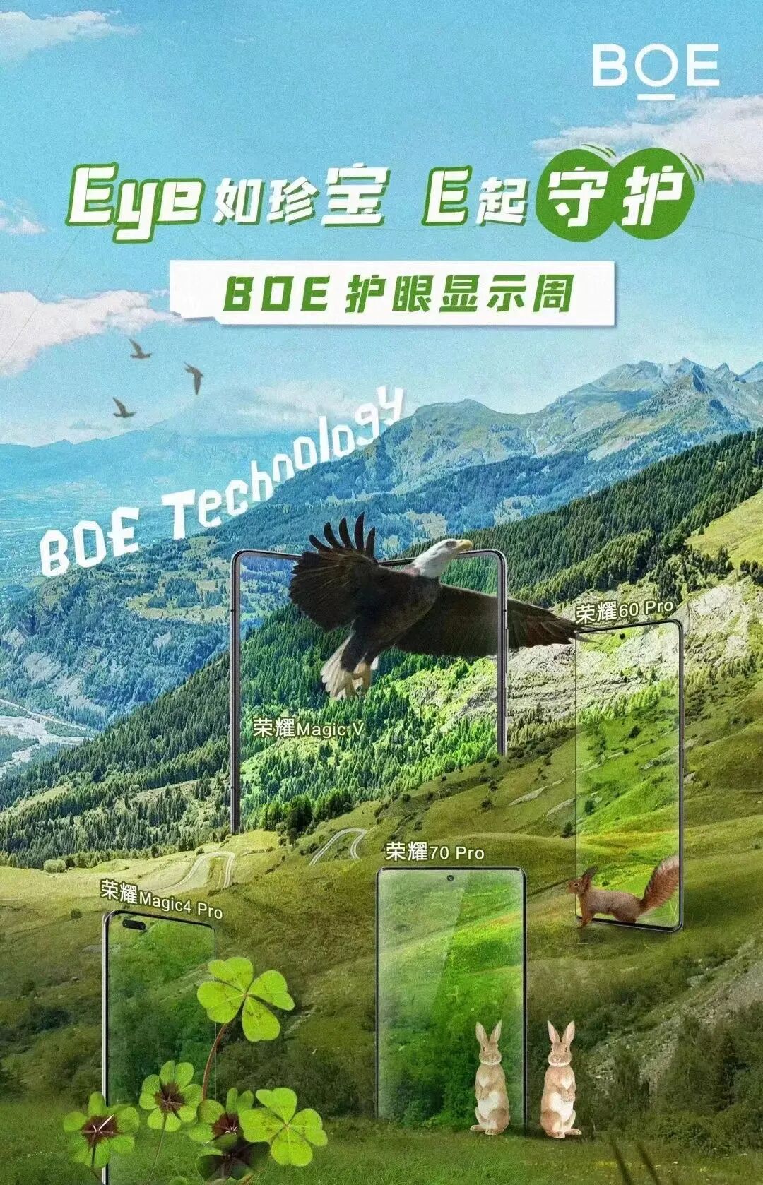 BOE(京东方)总裁高文宝博士表示,当前,用户获取信息的方式已全面迈入“读屏时代”,高频次、多场景、多形态的屏幕交互,使得基于护眼功能显示产品的市场需求空前释放。凭借对用户体验的高度关注与消费市场的精准洞察,BOE(京东方)推出了高频调光、低蓝光、自然光显示、类纸护眼显示等一系列全球领先,拥有自主知识产权的护眼技术产品,并与荣耀等众多一线智能终端品牌强强联合,深度协同,着力构建健康、绿色的联合创新生态。我们很高兴此次携手众多一线品牌发起“护眼显示周”活动,也期待更多产业链合作伙伴的加入,凭借技术突破,源源不断地为全行业的绿色健康应用发展注入创新动力,极大满足用户的视觉健康和护眼需求的同时,为消费者带来更优质、更美好的视觉体验。