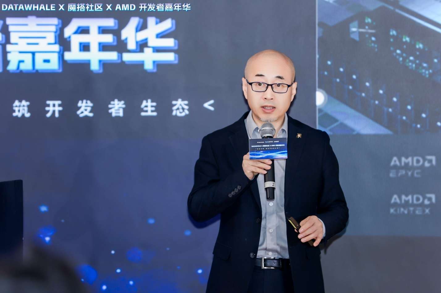 在开场的视频致辞中,AMD高级副总裁、大中华区总裁潘晓明表达了开源、开放是AMD坚持的核心价值,一直致力于支持并推动开源生态的蓬勃发展, 期待在魔搭社区和Datawhale这两大领先的开源社区中,AMD的创新技术与开发者的创新智慧,能够通过开源的力量融合在一起,激发潜能,为AI的发展与普及注入源源不断的动力。
