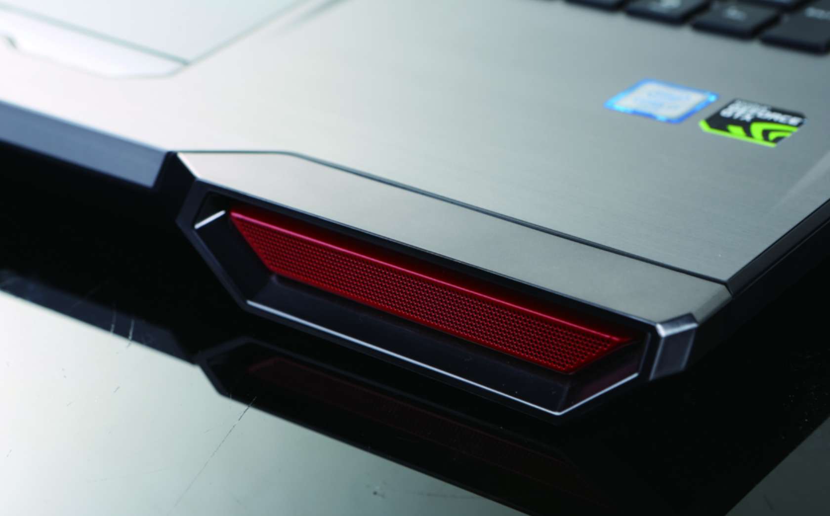911GT-Y1采用了Core i7-6700HQ+GeForce GTX 970M的核心配置,为了更好地散热,它不仅采用了这个尺寸笔记本都会采用的双风扇散热系统外,还在D面设计了多达8个进气口,以及C面热键两侧及背部边缘各有一对鲫片式散热口。配合金属机身,即使在寒冬的冬天玩上一整天游戏仍然会让人觉得机身冰凉——当然,这在炎炎夏日就是个利好了。如果这样你还不满足,那就直接打开热键上的风扇热键,它将强制风扇在高转速下运转,当然噪音会有点大就是了。