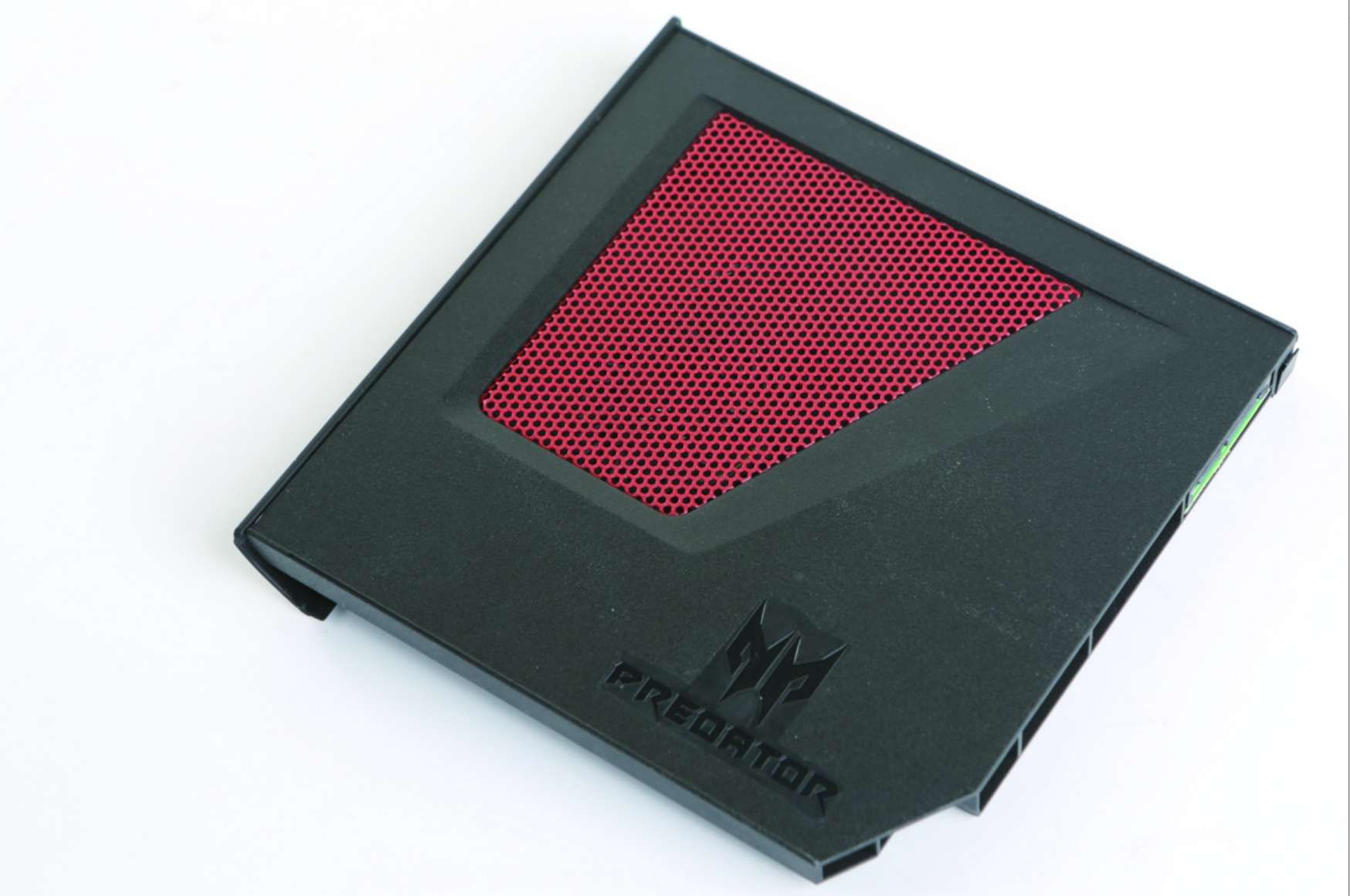 Predator的散热同样极有特色,对称设计的双风扇位于机身背部,宏碁独有的CoolBoost风扇增速技术和Acer DustDefender智能反转除尘技术都可以支持。如果你对此还不满足,宏碁还提供了光驱位风扇模块——反正现在也基本用不到光驱了不是。