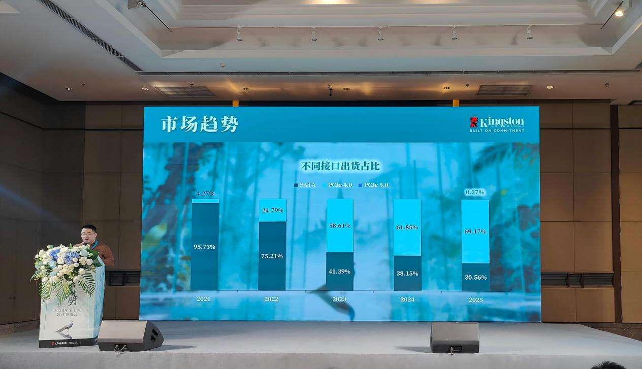 但考虑到目前行业用户依旧对SATA产品保有一定需求,所以金士顿是市场上为数不多持续供应SATA接口的SSD厂商。值得注意的是,2026年一季度,金士顿即将发布一款PCIe 5.0入门级、顺序读写速度达到11000MB/s的产品,卡在这个时间点推出PCIe 5.0 SSD,金士顿判断市场风向即将过渡到PCIe 5.0时代。