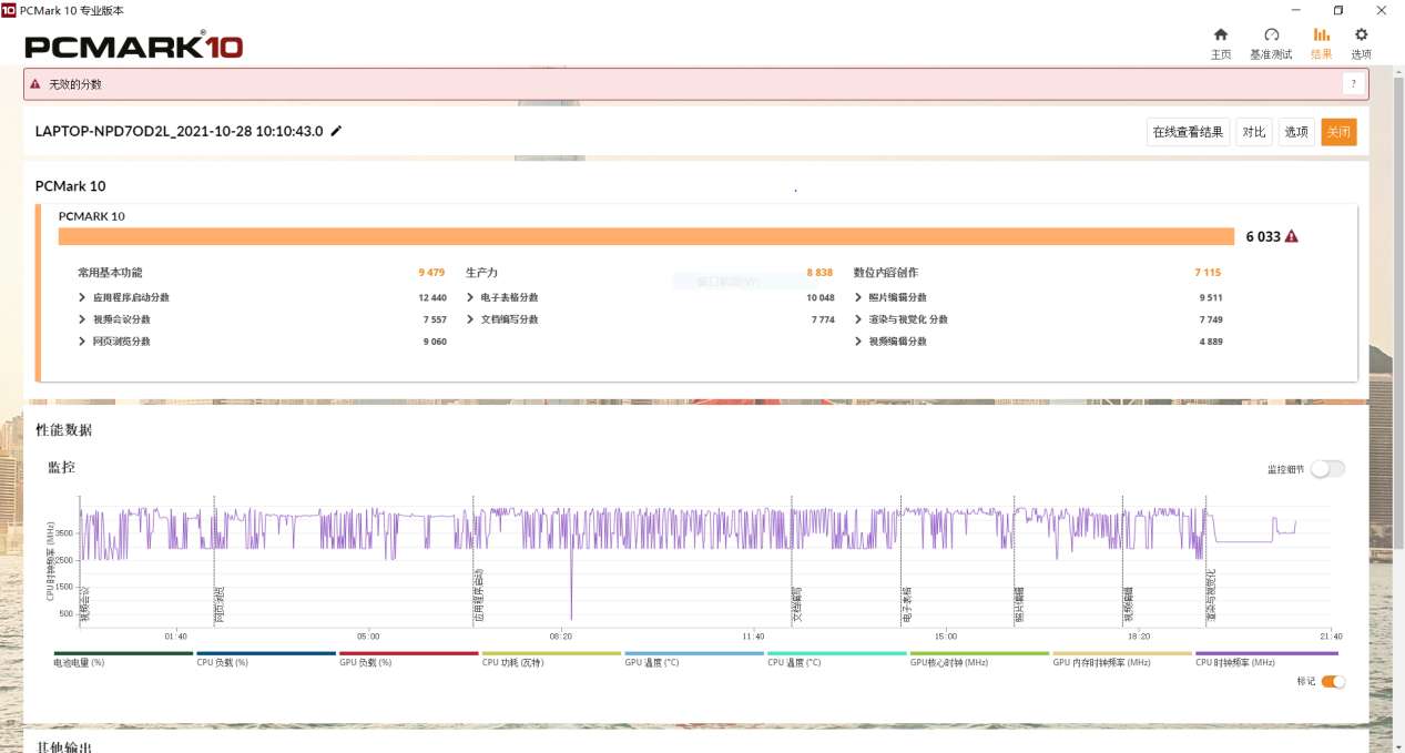 在综合性能测试这一项上,笔者选择了PCMark 10来测试,荣耀MagicBook 16 Pro锐龙版的综合成绩达到了6033分。