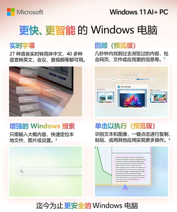 作为一款Windows 11 AI+ PC,系统中自然是加入了诸多AI功能,包括回顾、单击以执行、实时字幕以及增强搜索等等。除了系统本身自带的AI功能以外,联想还加入了联想智能会议,支持临时分身,可AI识别双向人声,能自动生成会议纪要。如果你想要一台高效便携、坚固耐用的商用笔记本,同时带有强大丰富的AI功能,那么ThinkPad T14 2025 AI元启着实值得考虑。