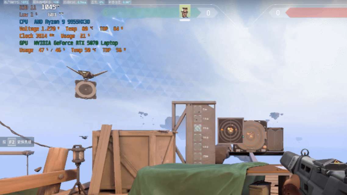 在许多高竞争性电竞游戏中,尤其是《无畏契约》这种强调精准反应和高帧数的游戏,魔霸9 Mini展现了其强悍的性能,尤其是在开启高画质设置并启用帧生成技术后,达到了“千帧电竞”的夸张表现。在“靶场”这一场景下,魔霸9 Mini的表现远超预期,稳定的帧率和毫无延迟的响应让每一场比赛都更加精准和流畅。开启帧生成技术后,系统将额外增加渲染的帧数,使得《无畏契约》在保持高画质的同时,在激烈战斗中依旧能高帧输出,这种体验在绝大多数台式机平台上也未必能达到。