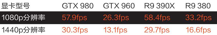另外值得一提的是,《古墓丽影:崛起》中抗锯齿选项中有SMAA(全屏抗锯齿)和FXAA(快速近似抗锯齿)。从画质对比来看,高倍数的SMAA画质无疑会精美很多,但是SMAA耗费资源巨大,尤其是高倍数的SMAA,非顶级显卡SLI或者CF请不要轻易尝试。相比之下,作为后处理抗锯齿的FXAA本身资源占用极低,但是画面效果经过对比和SMAA差距不大,建议玩家首选FXAA。图形选项中阴影质量、环境光遮蔽和各向异性过滤也比较影响性能,建议玩家酌情考虑。我选择了目前比较常见的GTX 980、GTX 960、AMD R9 390X和R9 380这几款显卡,来测试这款游戏对显卡的要求。